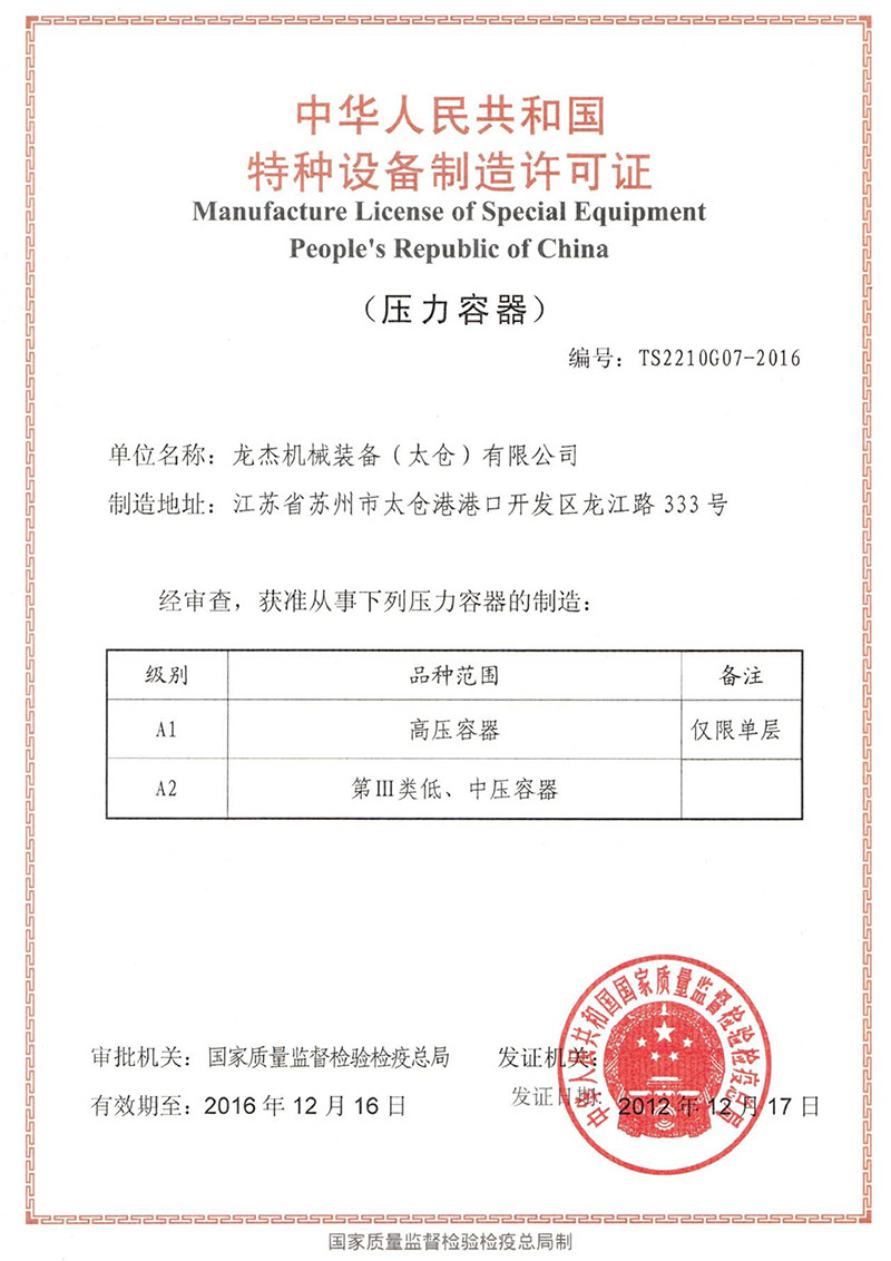 公司位于太倉港港口開發(fā)區(qū)內(nèi),近鄰太倉港,公路與水路交通運輸非常便利。公司總占地面積108.39畝,廠房面積49600平方米,公司具有GB標(biāo)準(zhǔn)A1級生產(chǎn)資質(zhì)(包含設(shè)計、制造)。依托龍杰集團多年積累的生產(chǎn)經(jīng)驗和累積的人才、客戶、供應(yīng)商資源優(yōu)勢,已形成年生產(chǎn)能力各類化工機械過程裝備15000臺(套)的規(guī)?;髽I(yè)。公司設(shè)計產(chǎn)能為3萬噸/年,年產(chǎn)值約8億元的生產(chǎn)能力。