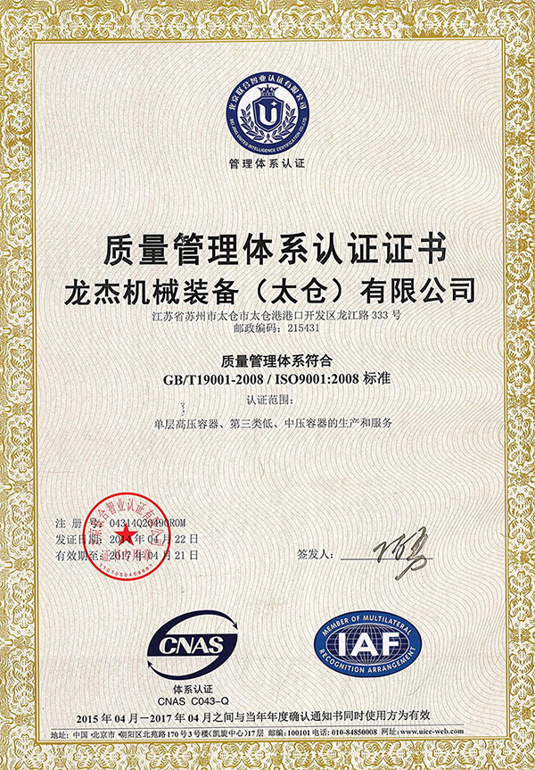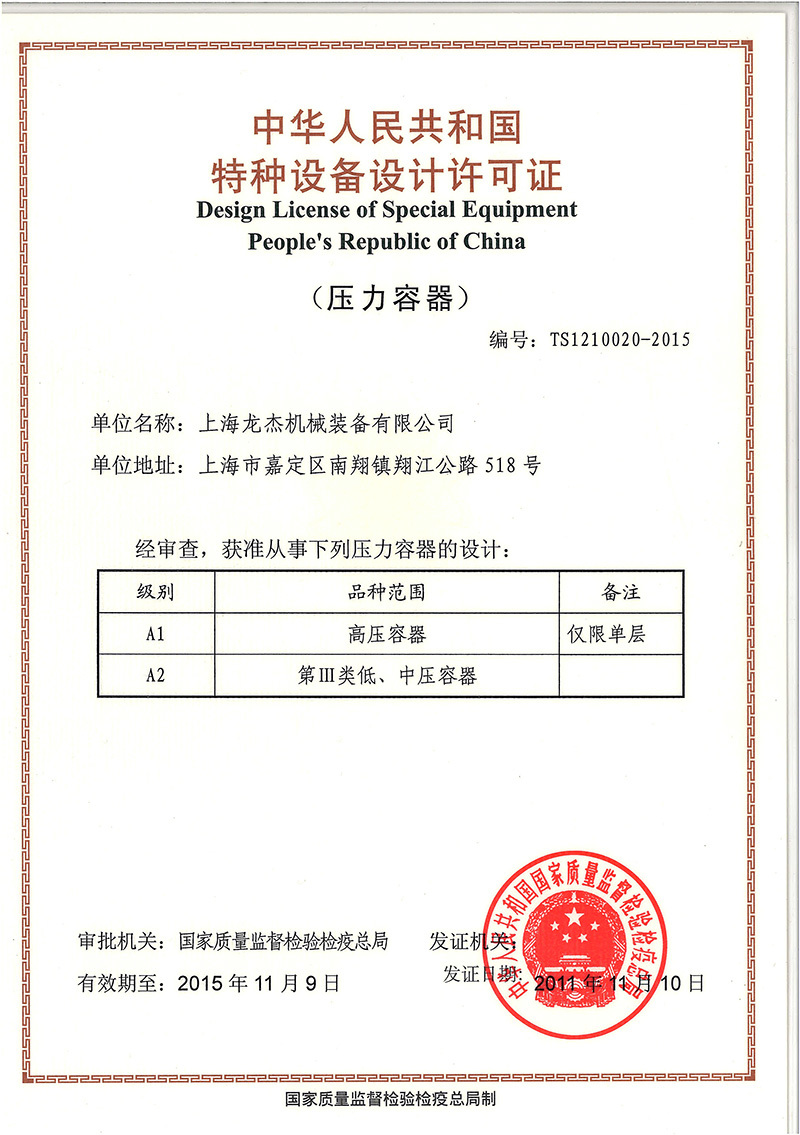 上海龍杰機械裝備有限公司是國家認證頒發(fā)的一、二、三類(A1、A2)高壓非標(biāo)容器和美國ASME設(shè)計、制造企業(yè),也是中石油、中石化定點的石油、化工裝備的制造基地。